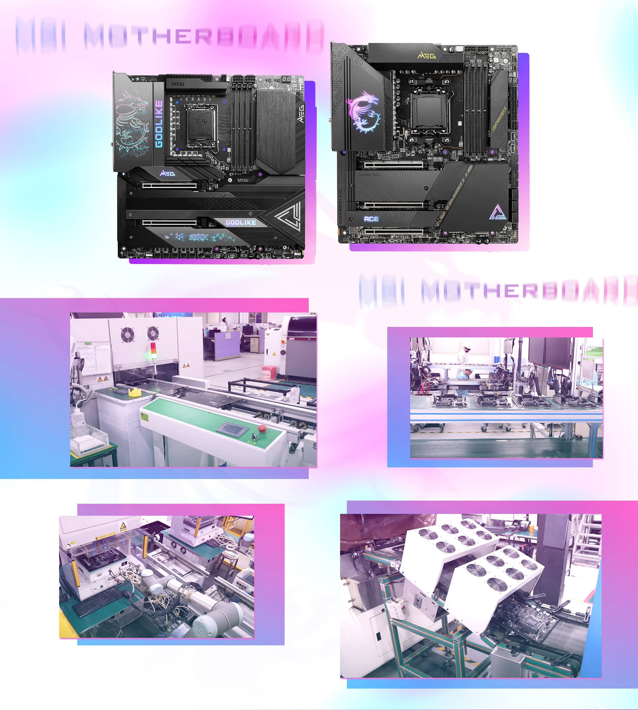 MSIは、メーカーと研究・共同開発を行った生産機械を導入し、工程を自動化することで、月間最大130万枚の生産能力を有しています。大量生産を可能にするだけでなく、独自の検査機器により、不良率を大幅に削減し、従業員に徹底したトレーニングを実施することで、人為的ミスの削減とオペレーションの効率化を目指しています。さらに、工場に併設される国家認証取得自社研究ラボにてあらゆる事象を想定し、徹底解析することで不良要因を一つ一つ改善し、業界No.1を自負する耐久性、高性能なマザーボードを生産しています。MSIはこれからも、厳格な管理体制の下、高耐久かつ高性能なマザーボードを生産し、世界中のユーザーの要望に応える製品を提供し続けます。