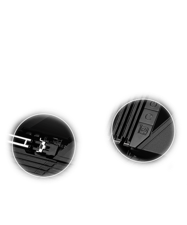 - M.2 XPANDER-Z SLIDER GEN5: わずか1スロット厚の筐体に、2基の高速Gen5 M.2スロットを凝縮した拡張カード。革新的な「EZ Slide」設計により、SSDの換装やアップグレードがかつてないほどスムーズに行えます。
