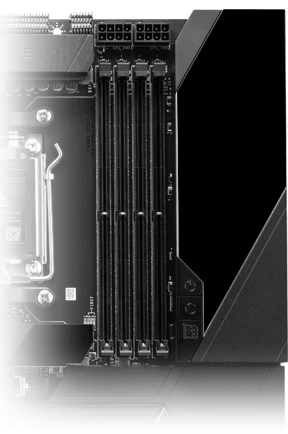 24+2+1フェーズ 110A SPS Duet Rail Power System電源回路を採用。CPUのパフォーマンスを限界まで引き出すための強固な電源設計を備えています。