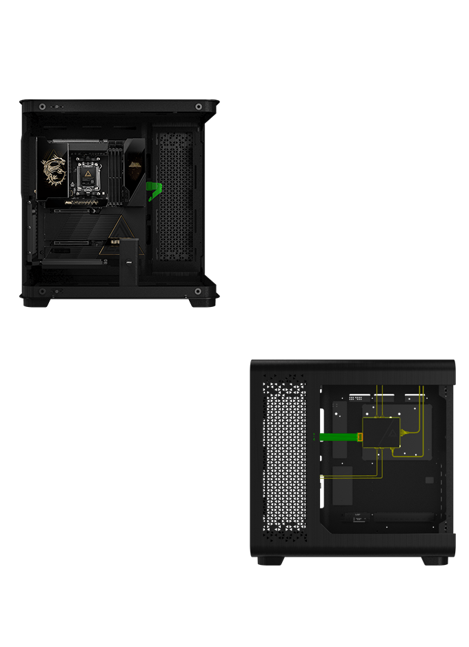 GODLIKE専用の「EZ Link」設計は、ケースのフロントパネルヘッダー、ファンヘッダー、RGBヘッダーの大部分を「EZ Bridge」と「EZ Control Hub」に集約します。これにより、煩雑な配線作業を簡略化するだけでなく、システム全体の美観をよりクリーンに引き立てます。