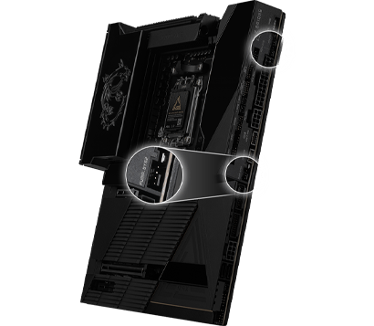 - Ultra Performance: 24+2+1フェーズ 110A SPS Duet Rail Power System、OC Engine、デュアル8ピンCPU電源コネクターを装備。Core BoostやMemory Boostに加え、2オンス厚銅層を採用した10層のサーバーグレード基板により、最高峰のパフォーマンスを引き出します。
