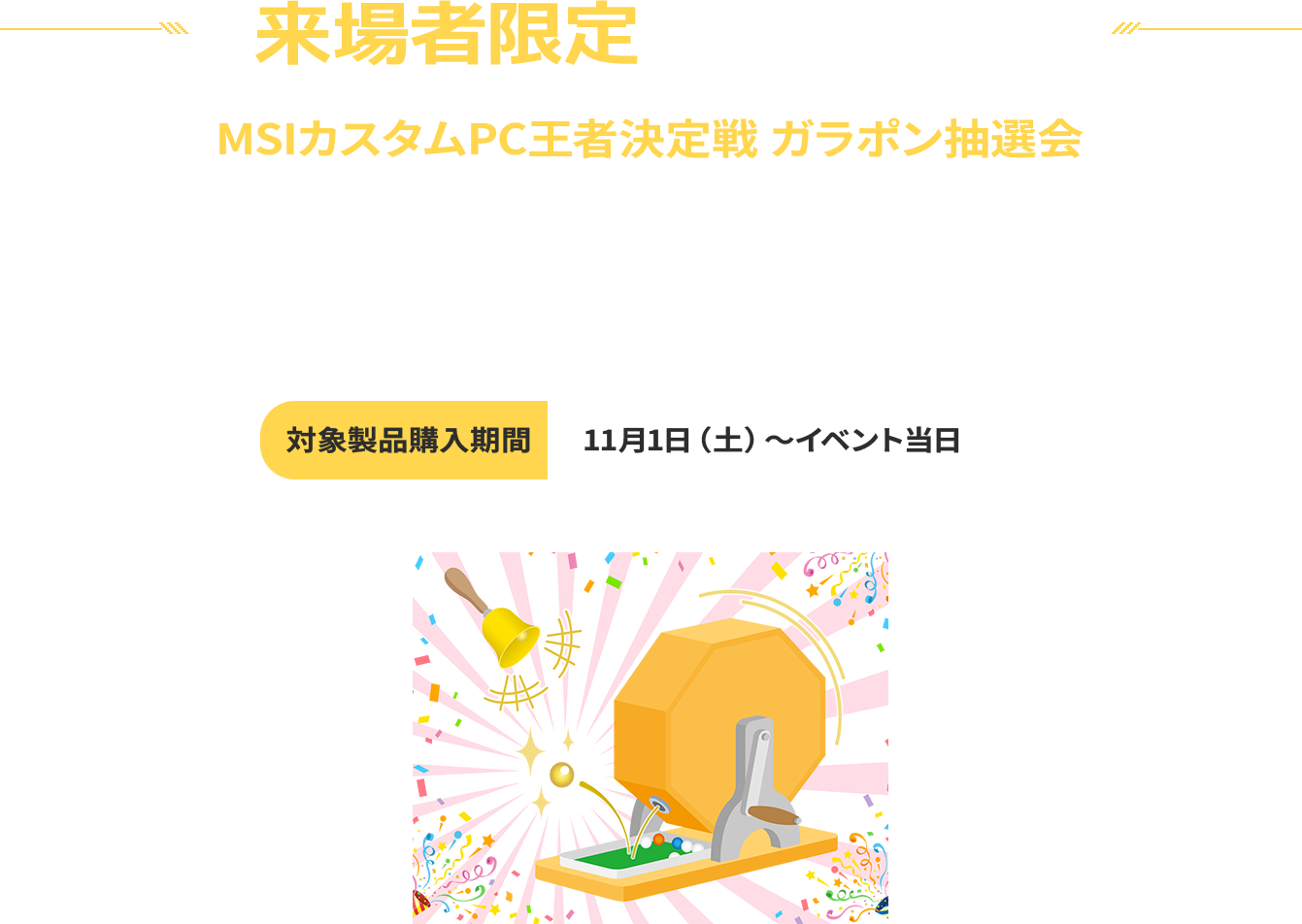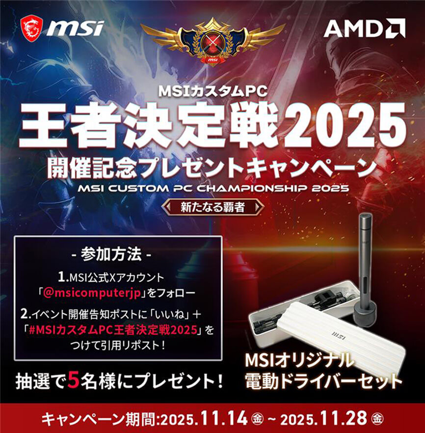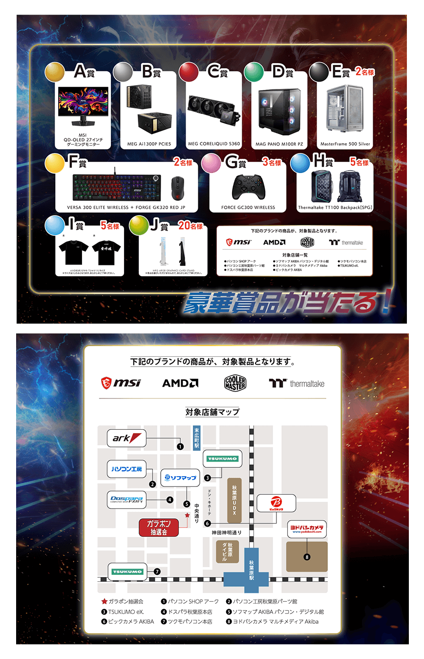 制限時間内にPCを組み立て、4つの審査項目で頂点を目指せ! 「速さ」「配線美」「完成度」「個性」——あなたの“PC魂”が試される。 審査員による厳正な採点のもと、最も優れたカスタムPCを完成させた挑戦者には、 賞品として《100万円相当のハイエンドPCパーツ》を贈呈! さあ、あなたの手で「カスタムPCのチカラ」を世界に示そう。