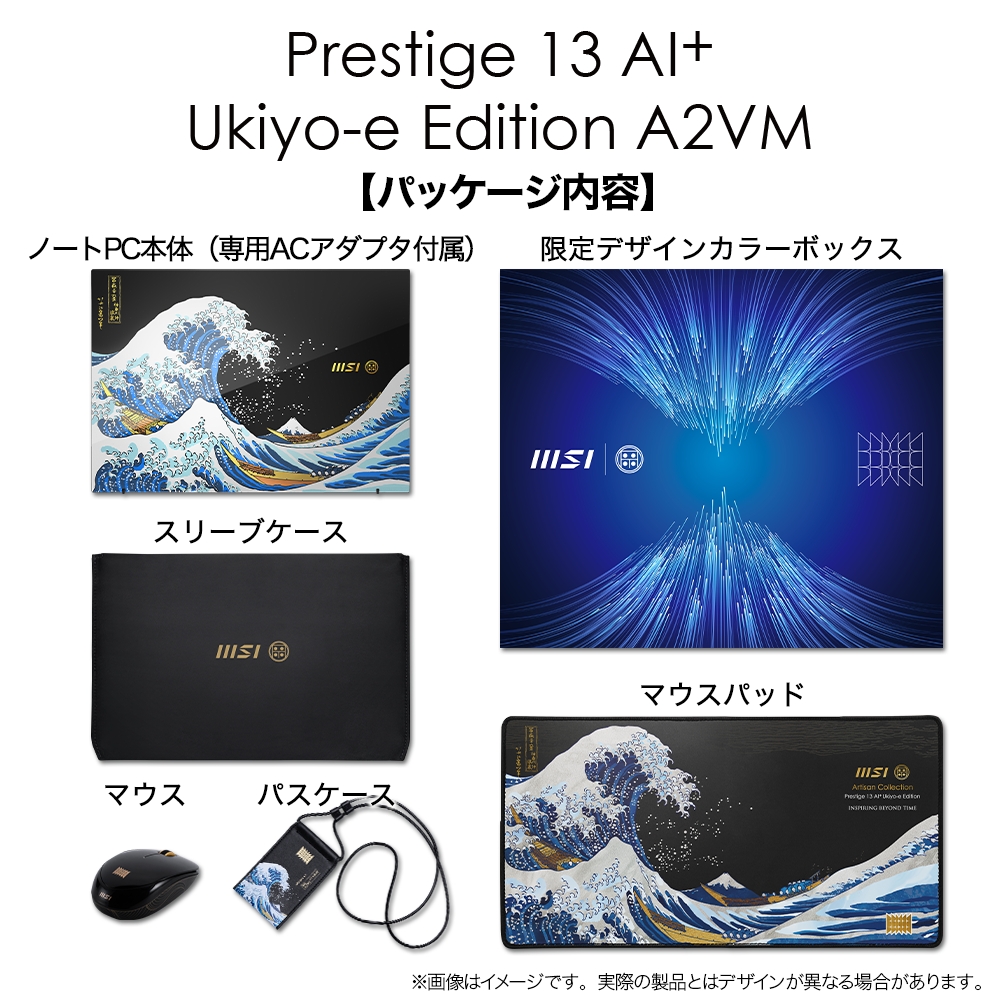 - この度、エムエスアイコンピュータージャパン株式会社は、株式会社岡田や漆器(以下、「岡田や漆器」)とコラボレーションし、次世代AI PCのテクノロジーと日本の漆・蒔絵の伝統工芸を融合させることによって誕生した画期的なノートPC「Prestige 13 AI+ Ukiyo-e Edition A2VM」の日本国内向けモデルを本日2025年9月5日(金)より発売いたします。