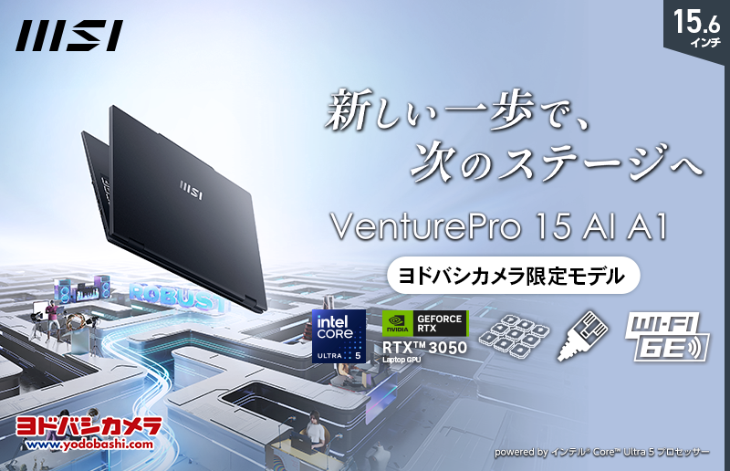 - この度、エムエスアイコンピュータージャパン株式会社は、MSIビジネスノートPCシリーズのラインアップを強化するべく、1シリーズで幅広いニーズに対応できる新しいビジネスノートPCとして開発された「VenturePro」シリーズより、「GeForce RTX™ 3050 Laptop GPU」と「Microsoft 365 Basic + Office Home & Business 2024」を搭載したヨドバシカメラ限定モデル「VenturePro-15-AI-A1UDXG-3506JP」を2025年6月12日(木)より順次発売いたします。