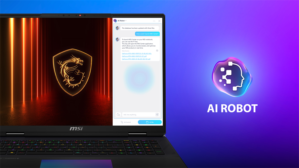 - MSIは最新のAIイノベーションである「MSI AI Robot」を発表しました。NVIDIAとの共同開発によって生まれたこの最先端のAIアシスタントは、ローカルに展開された小型言語モデルをシステムに直接統合しています。AI Robotを使用すると、インターネット接続がなくても自然言語コマンドでラップトップを制御でき、ラップトップの設定や管理がより直感的に行えます。AI Noise Cancellation ProやAI Engine十と共に、MSIの包括的なAI機能がノートPCの利便性を強化し、よりスマートで直感的かつ操作しやすいユーザー体験を提供します。