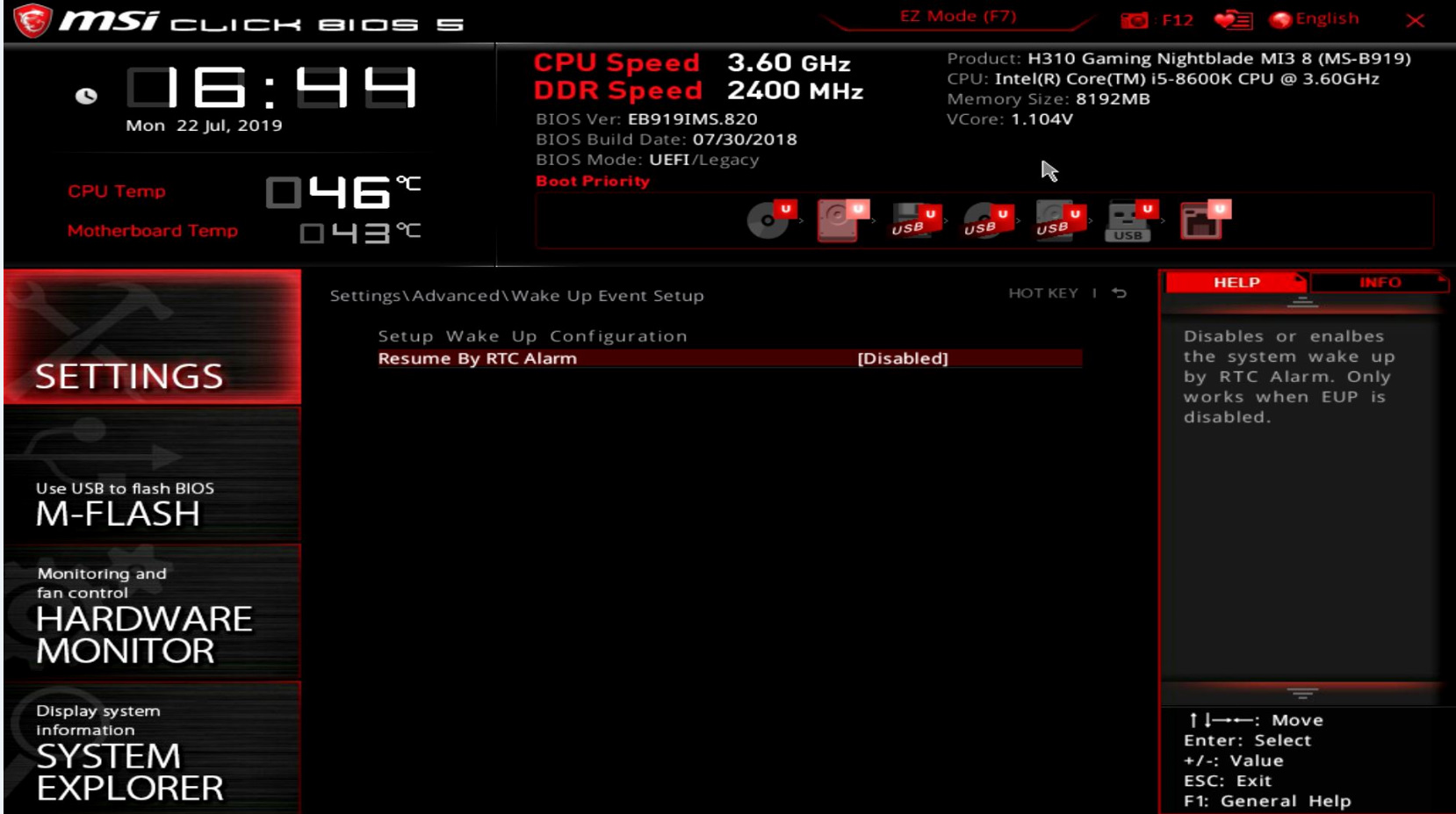 - *Wake up event settings(ウェイクアップイベント設定): システムのウェイクアップモードの設定