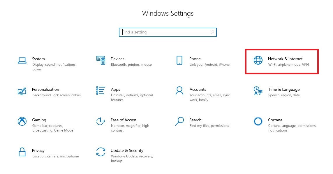 - ●ワイヤレス共有デバイスが正常な場合は、Windowsキー1 → [Windows Settings(Windowsの設定)] → [Network & Internet(ネットワークとインターネット)]をクリックしてください。