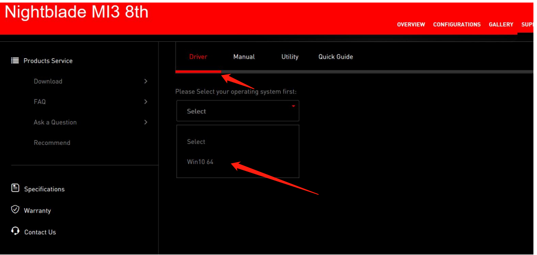 - 4. [Download(ダウンロード)]ページで[Driver(ドライバー)]をクリックし、OSのバージョンを選択します。
