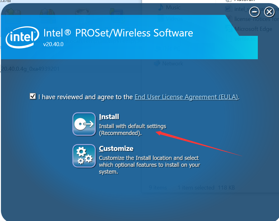 - 9. アプリケーションの実行後、ポップアップダイアログボックスの[Accept(同意する)]のチェックマークをオンにし、[Install(インストール)]をクリックします。