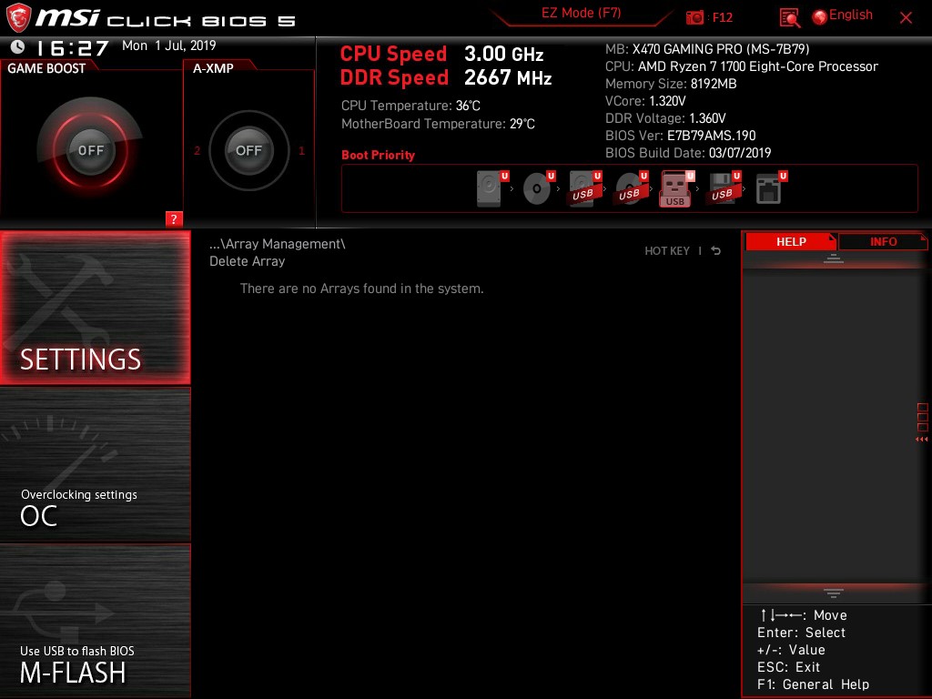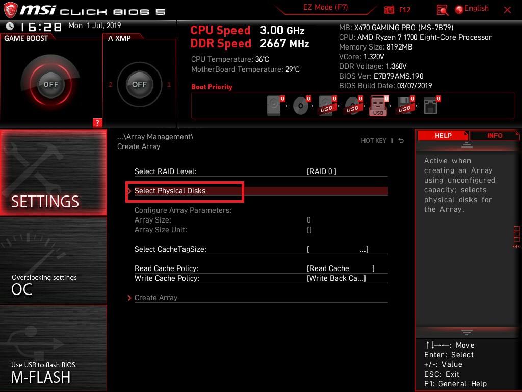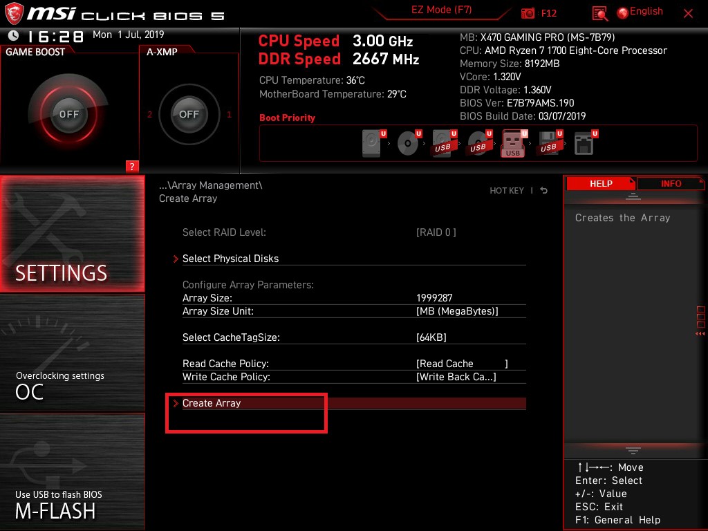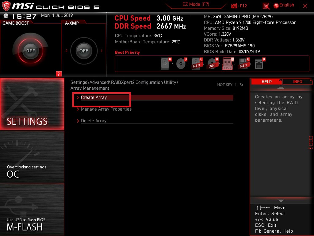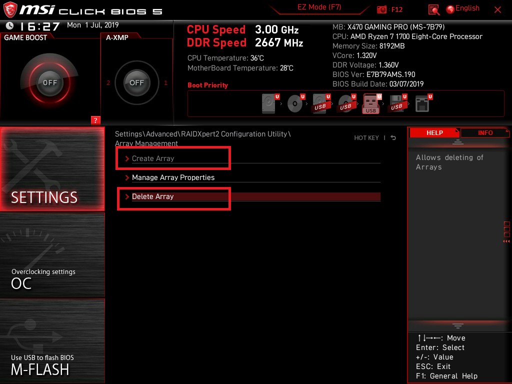 o [Create Array(アレイの作成)]がグレーアウトされている場合、現在のディスクがすでにRAIDアレイに設定されていることを意味します。RAIDを作成し直す場合は、[Delete Array(アレイの削除)]をクリックしてください。