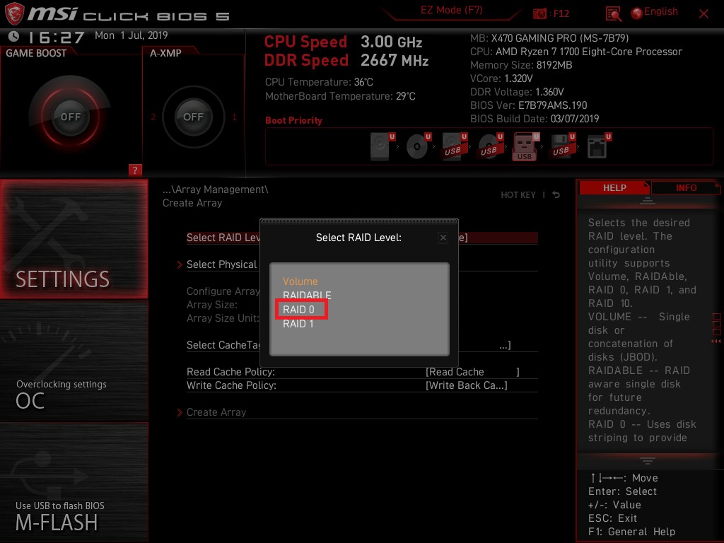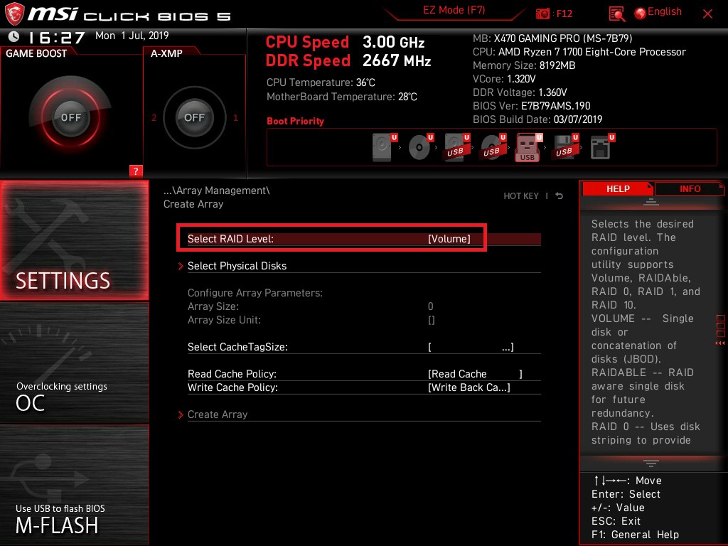 o [Create RAID Volume(RAIDボリュームの作成)]を選択します。