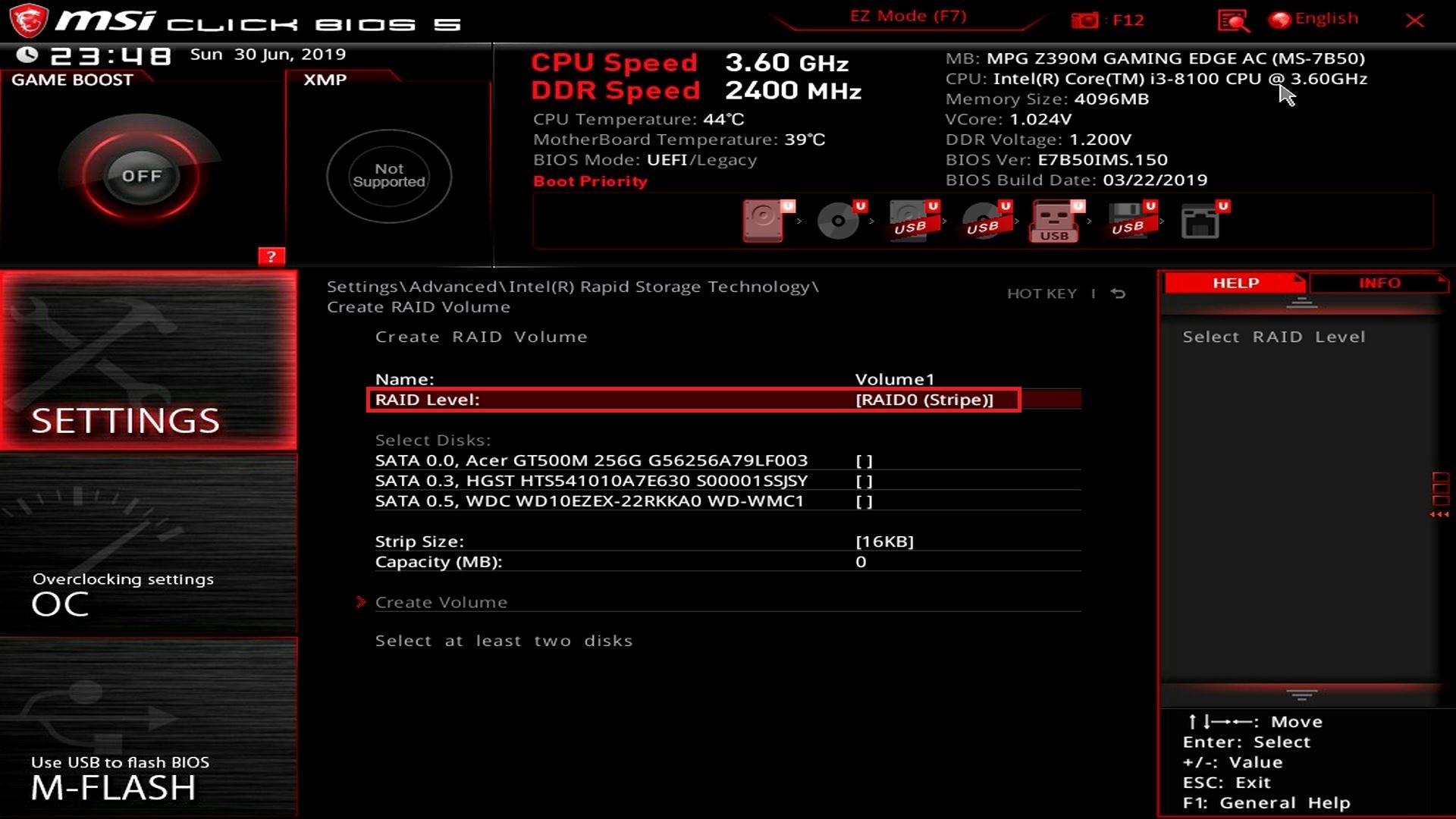RAID 0: 同数のチャネル、同数のプロトコル、同じ容量を持つディスクを2台以上使用します。RAID 0では、書き込みと読み出しの速度が向上し、同時にパフォーマンスが向上します。