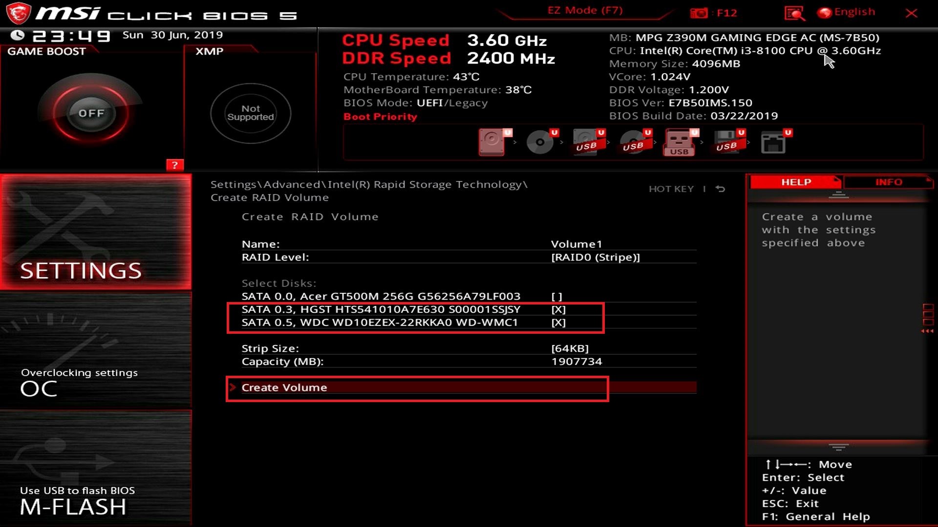 たとえば、HGSTおよびWDCのディスクを選択し、[create Volume(ボリュームの作成)]をクリックします。