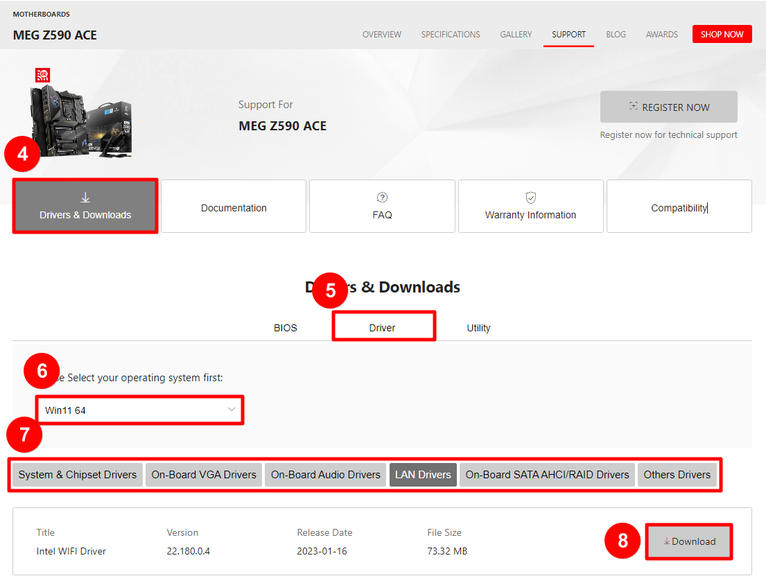 MSI公式Webサイトからのドライバーのダウンロードとインストール