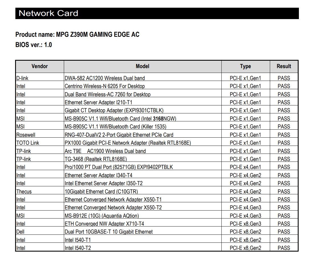 o [Network card](ネットワークカード)をクリックすると、対応するPCIeデバイスが表示されます。