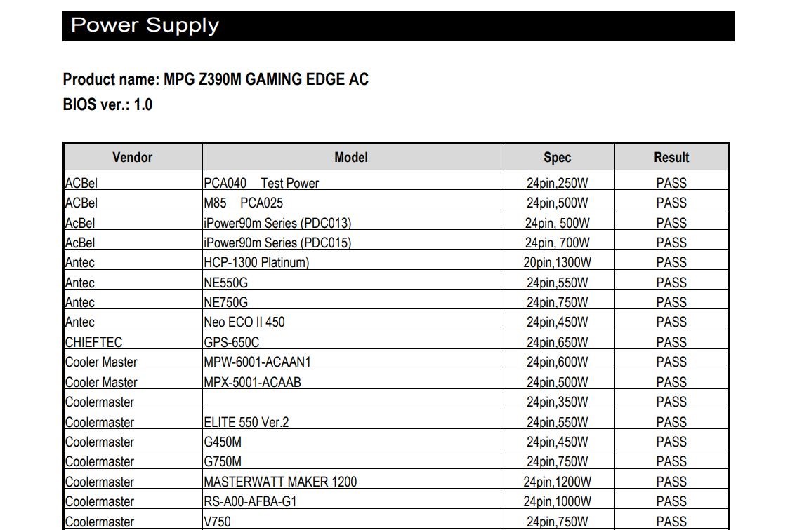 o [Power supply(電源装置)]をクリックすると、対応する電源装置が表示されます。