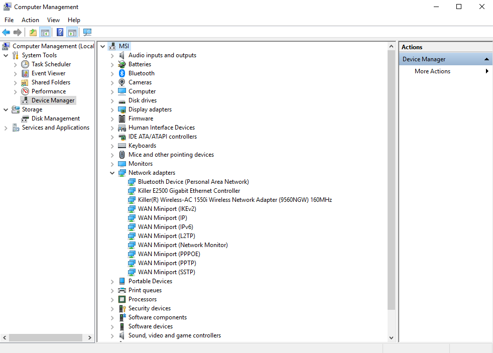 1. デバイスマネージャーに移動して、コンピューターのネットワークカードモデルがKillerネットワークカードであることを確認してください。