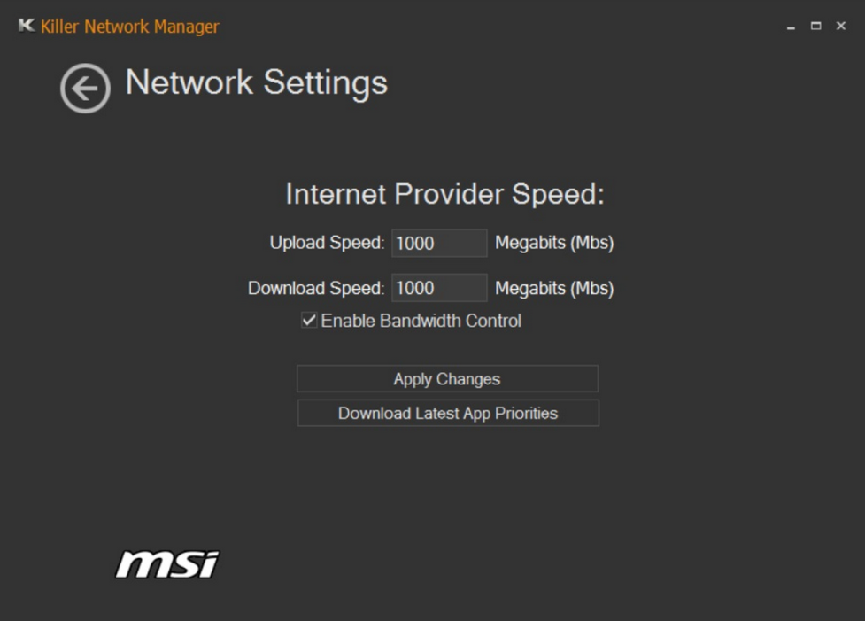 このアイコンをクリックしてKillerコントロールパネルを開き、「Settings(設定)」をクリックします。