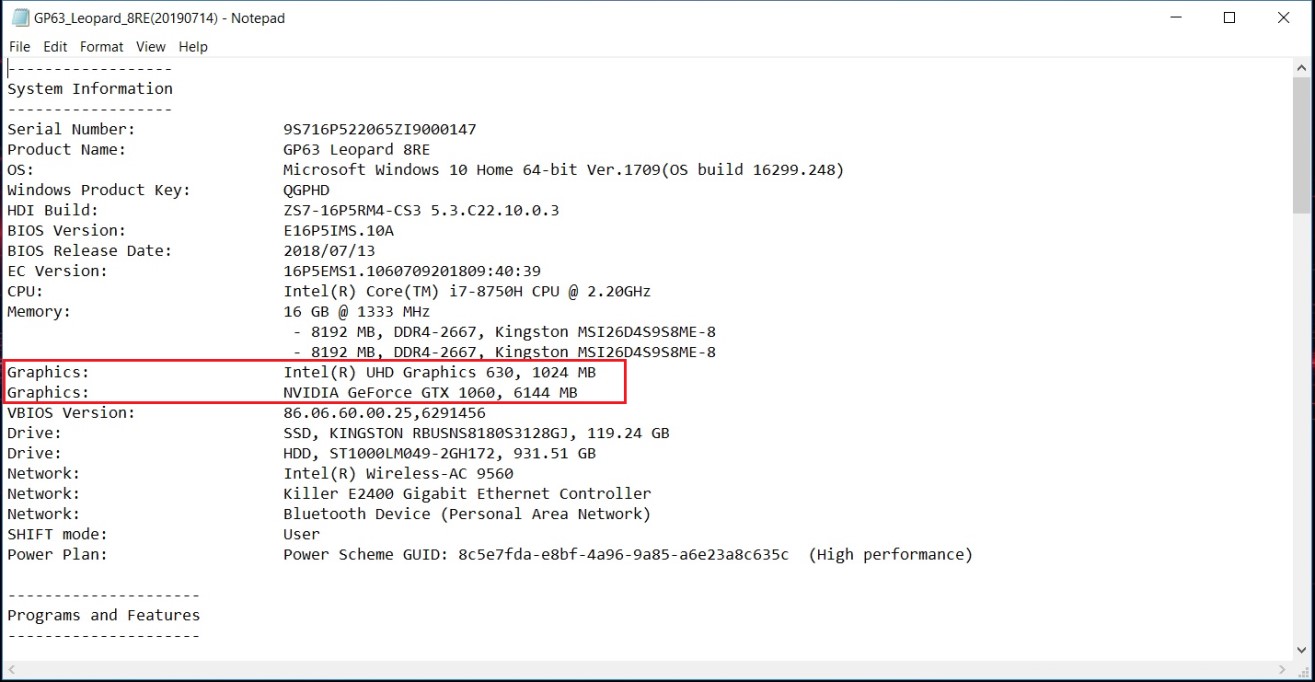 4. テキストファイルのGPU情報を確認してください。